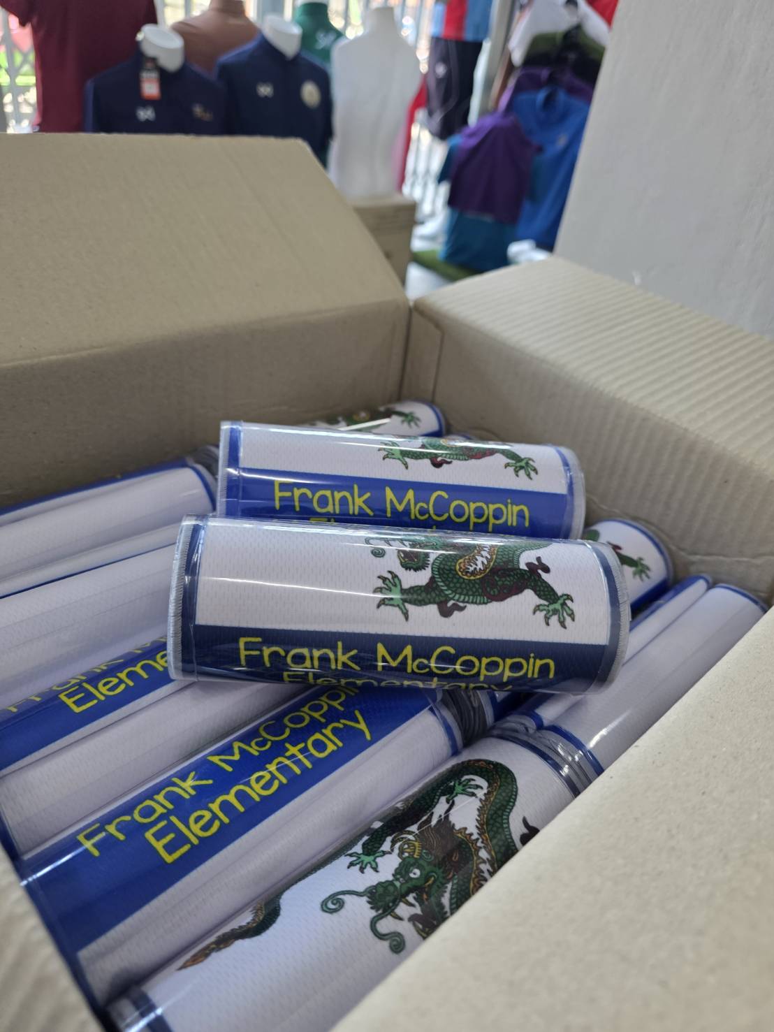 ตัวอย่างล่าสุด: ผ้าพันคอธงของ Frank McCoppin Elementary ที่ทั้งสวยงามและเต็มไปด้วยพลังใจของมังกรเขียว