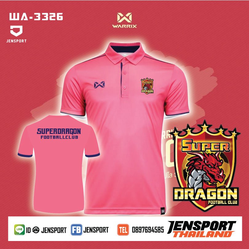 เสื้อบอล Warrix WA-3326 สีชมพู ทีม super dragon FC