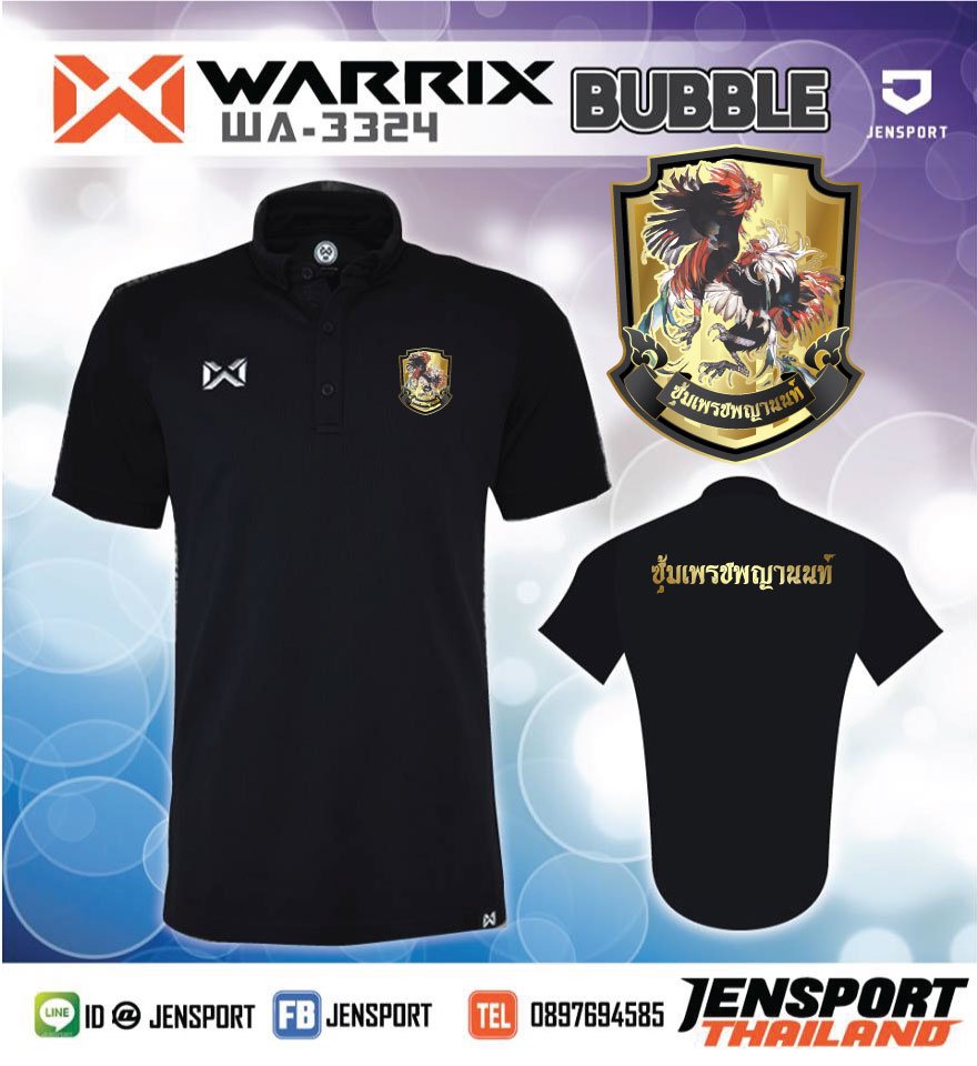 โลโกไก่ชน ซุ้มเพรชพญานนท์ กับเสื้อ Warrix WA3324 สีดำสุดสวย ออกแบบโลโกไก่ชนใหม่ ครับผม สวยหรูกันไปเลย