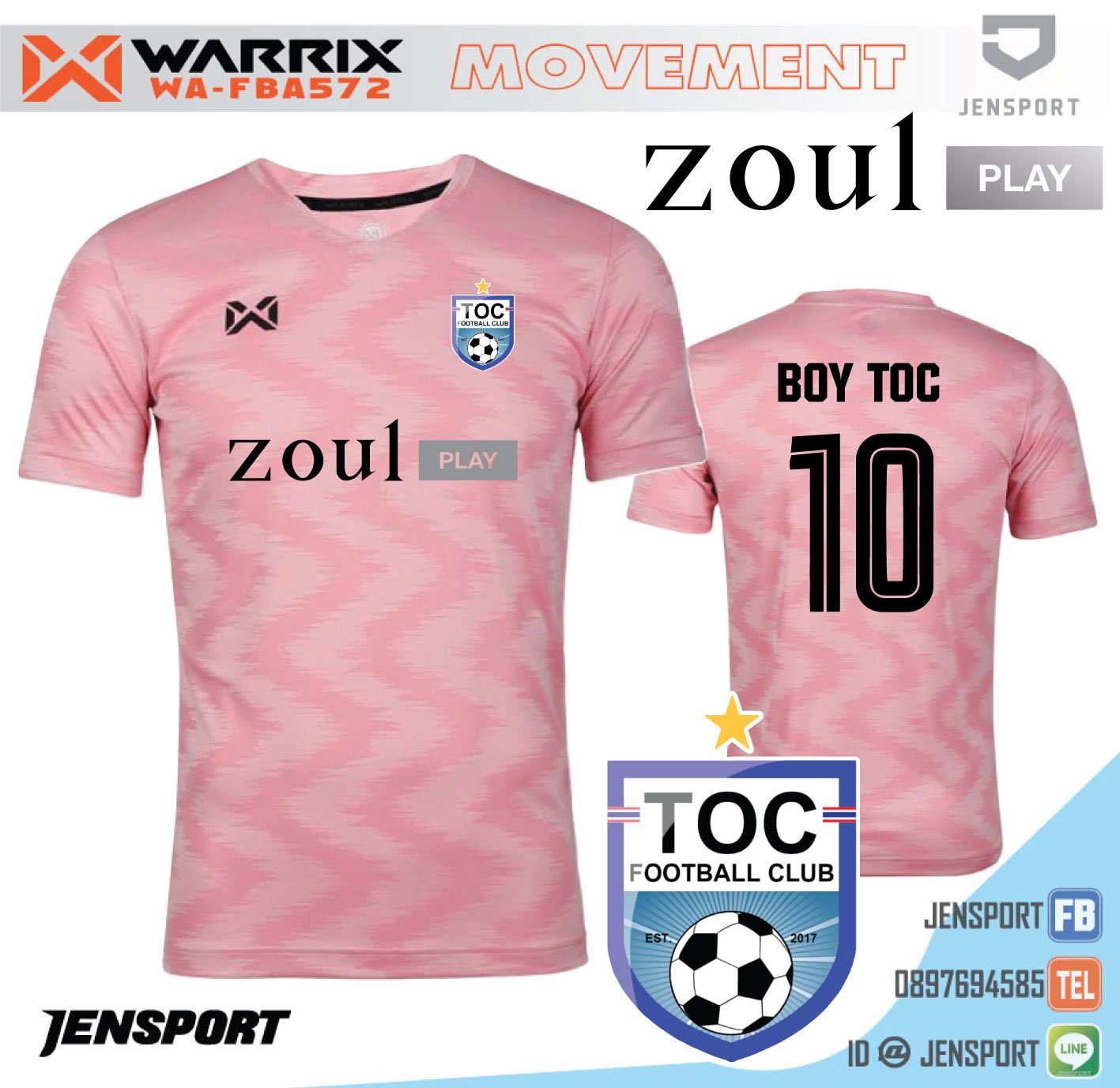 เสื้อลาย MOVEMENT สีชมพู และสีดำ แต่งเฟล็กให้เหมาะกับเสื้อ ทีม TOC สปอนเซอร์กลางอก ZOUL PLAY ตัวเฟล็กสวยงาม