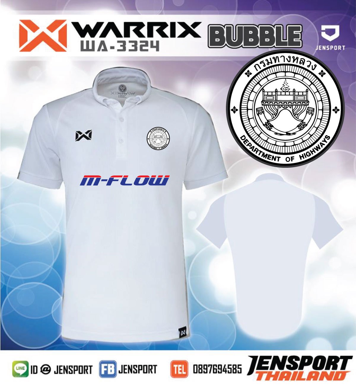 เสื้อกีฬาคอปก Warrix WA3324 สีขาม กรมทางหลวง M FLOW
