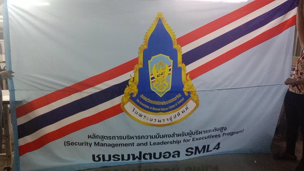 ขอขอบคุณ วิทยาลัยป้องกันราชอาณาจักร หลักสูตร วปอ SML4 นะครับ สั่งทำทีเดียวครบทั้ง ธงใหญ่ลงสนาม 1 ธงโบก 3 และ ธงแลกเปลี่ยน 10 ผืน