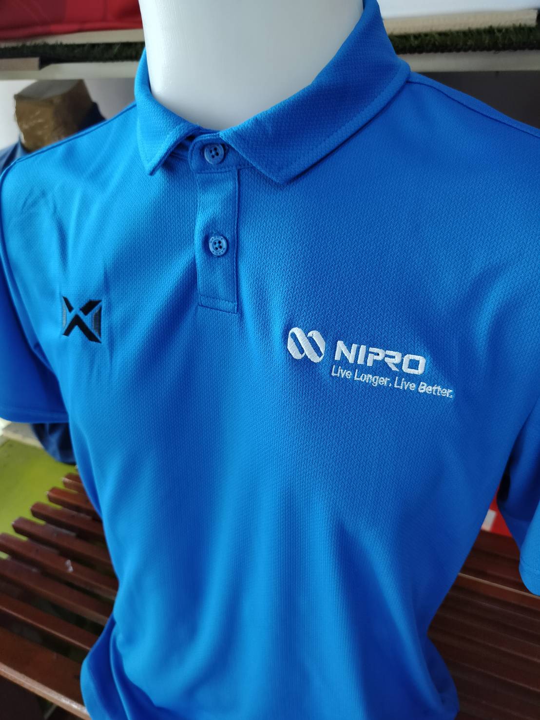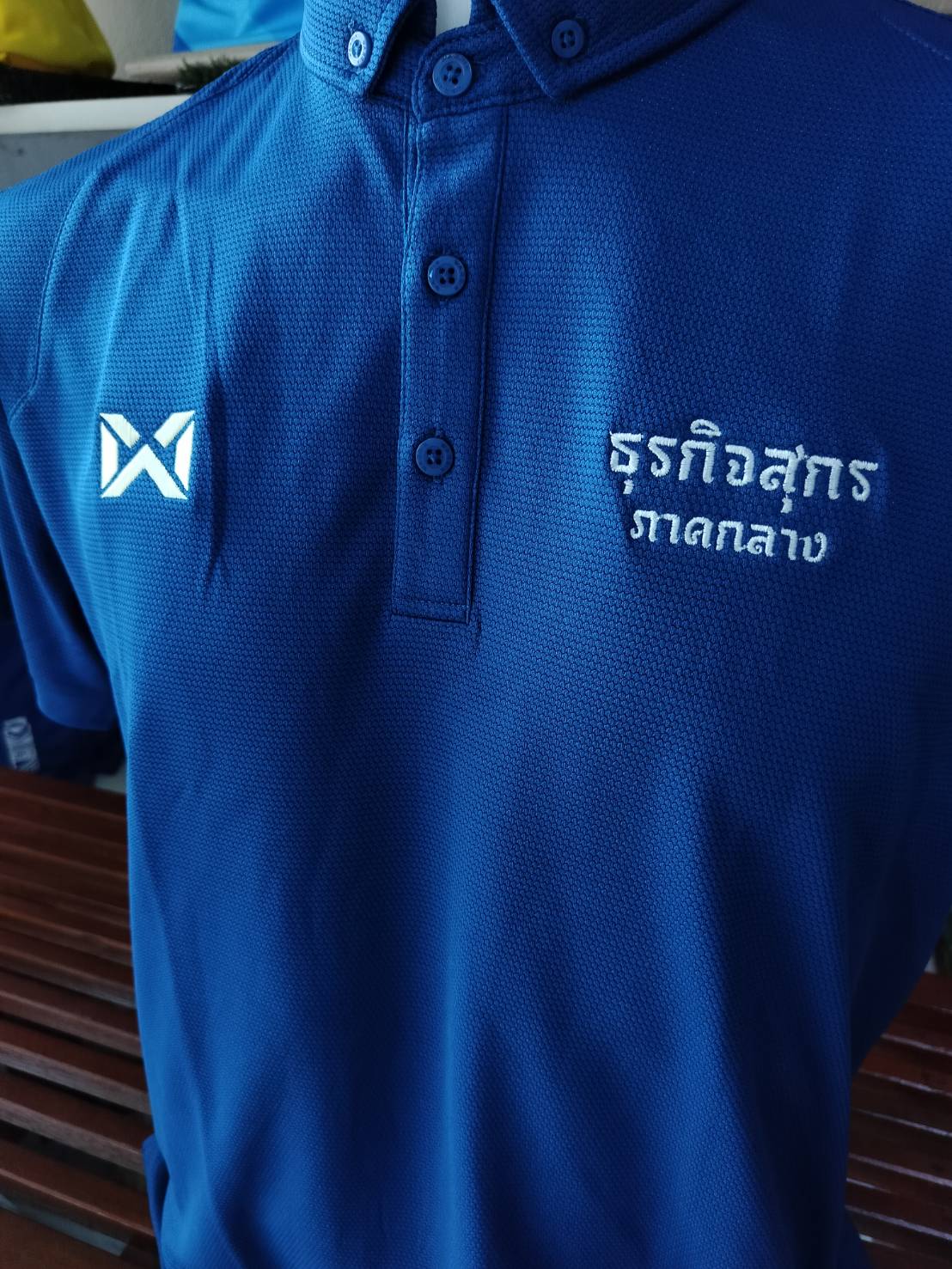 งานปักสวยๆลงบนเสื้อคอปกผ้ากีฬา ยี่ห้อ warrix